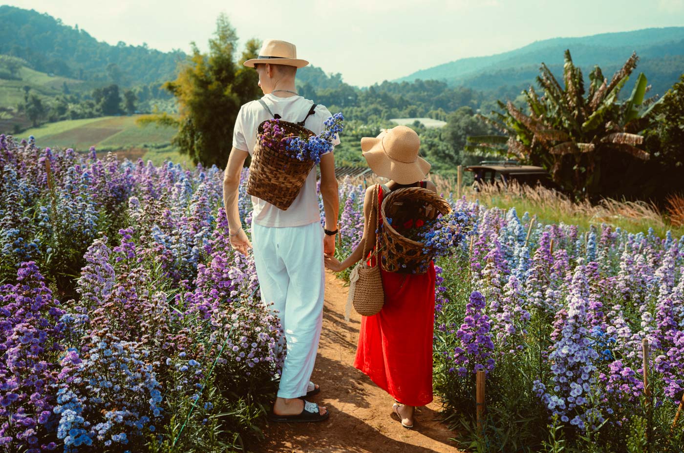 Looking for a Chiang Mai photographer who actually knows the city? We travel from Bangkok and cover every corner of it, from old city temples to mountain flower fields and jungle waterfalls. Our sessions are private, guided, and built around your schedule.