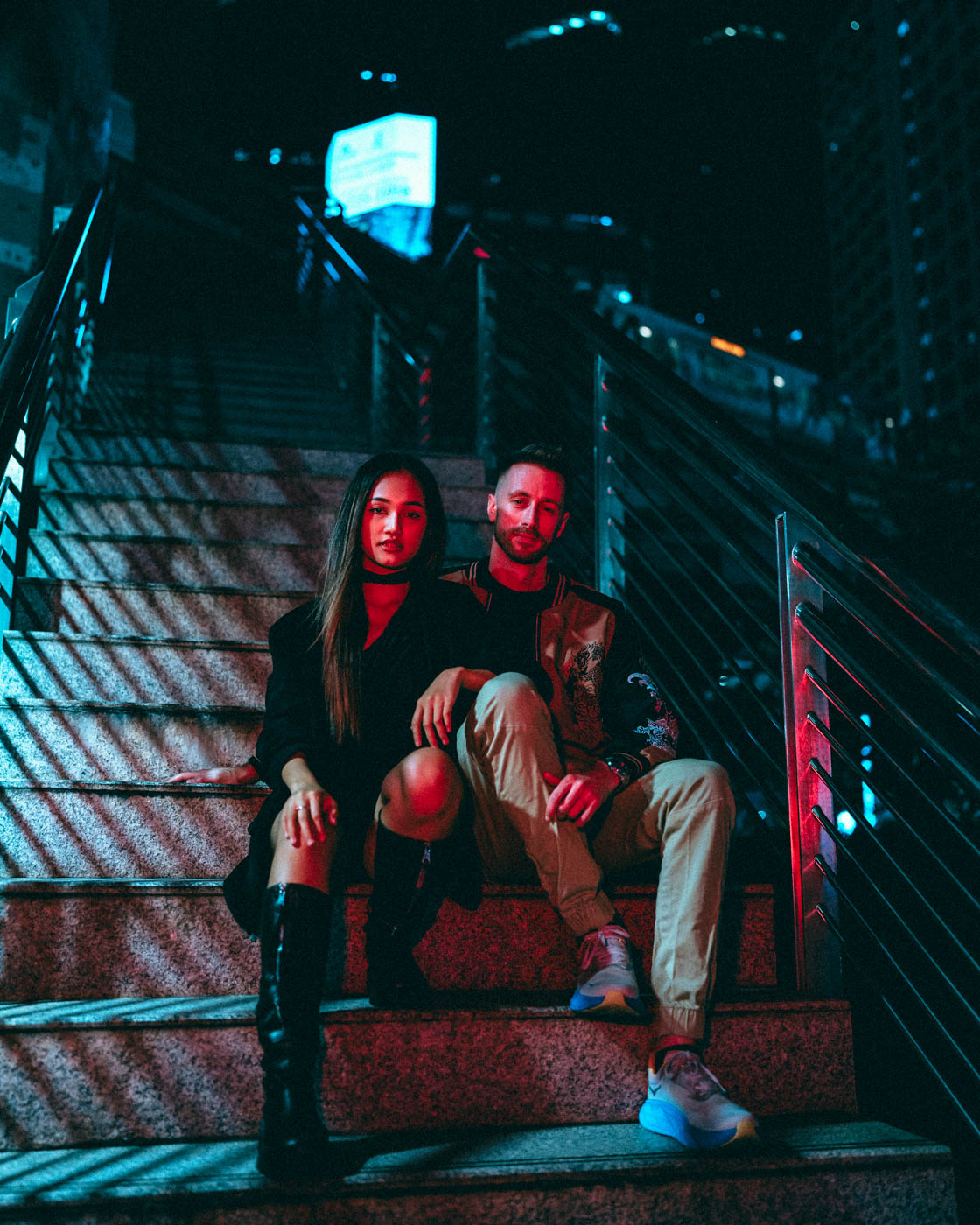 Cinematic night photography with neon lights and city energy. Ideal for Chinatown and urban locations. Creates a completely different mood with dramatic lighting.