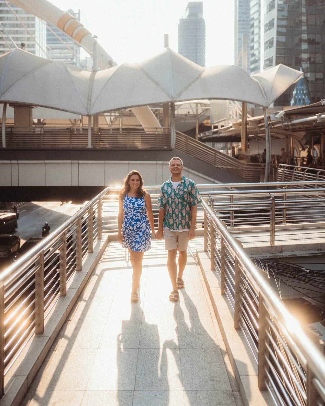 For a great lifestyle photoshoot in Bangkok, bring 2-3 different outfits that match your style and look good in urban settings. Solid colors usually work much better in photos than busy patterns, but one eye-catching piece can make your photos pop.