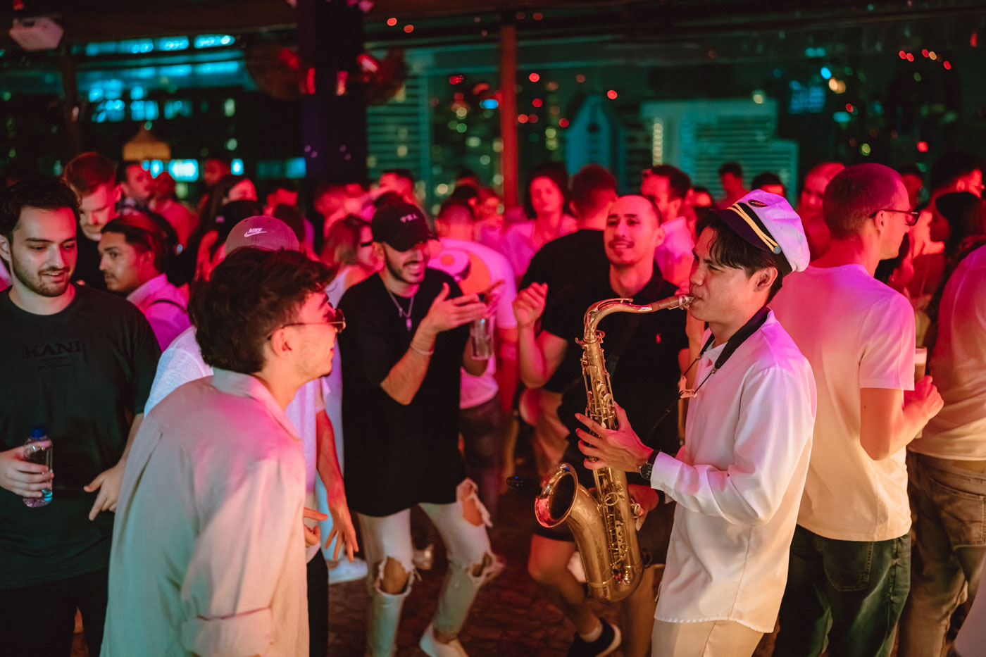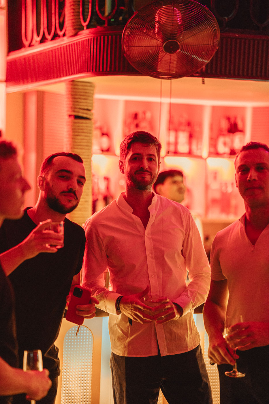 The best Sony camera and lenses, a7RV, 35mm f/1.4, 85mm f/1.4. I use only prime lenses at night for the best quality. This professional equipment ensures sharp, detailed images even in challenging low-light environments typical of evening celebrations.