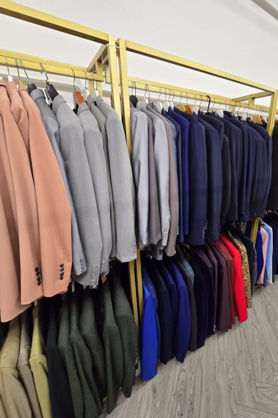 Visit the shop to select and fit your outfits (all sizes available on-site)