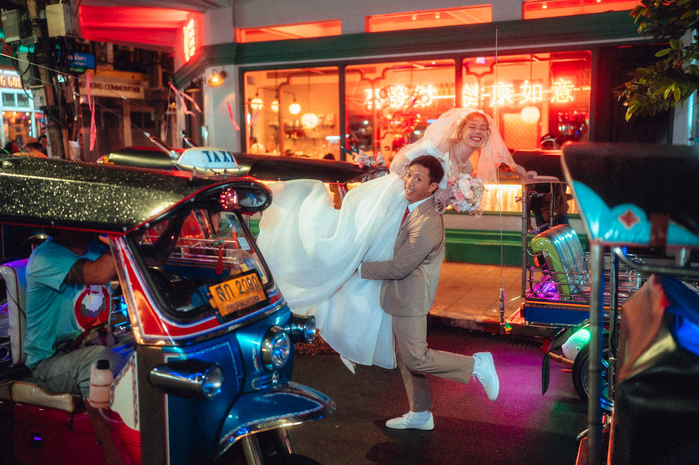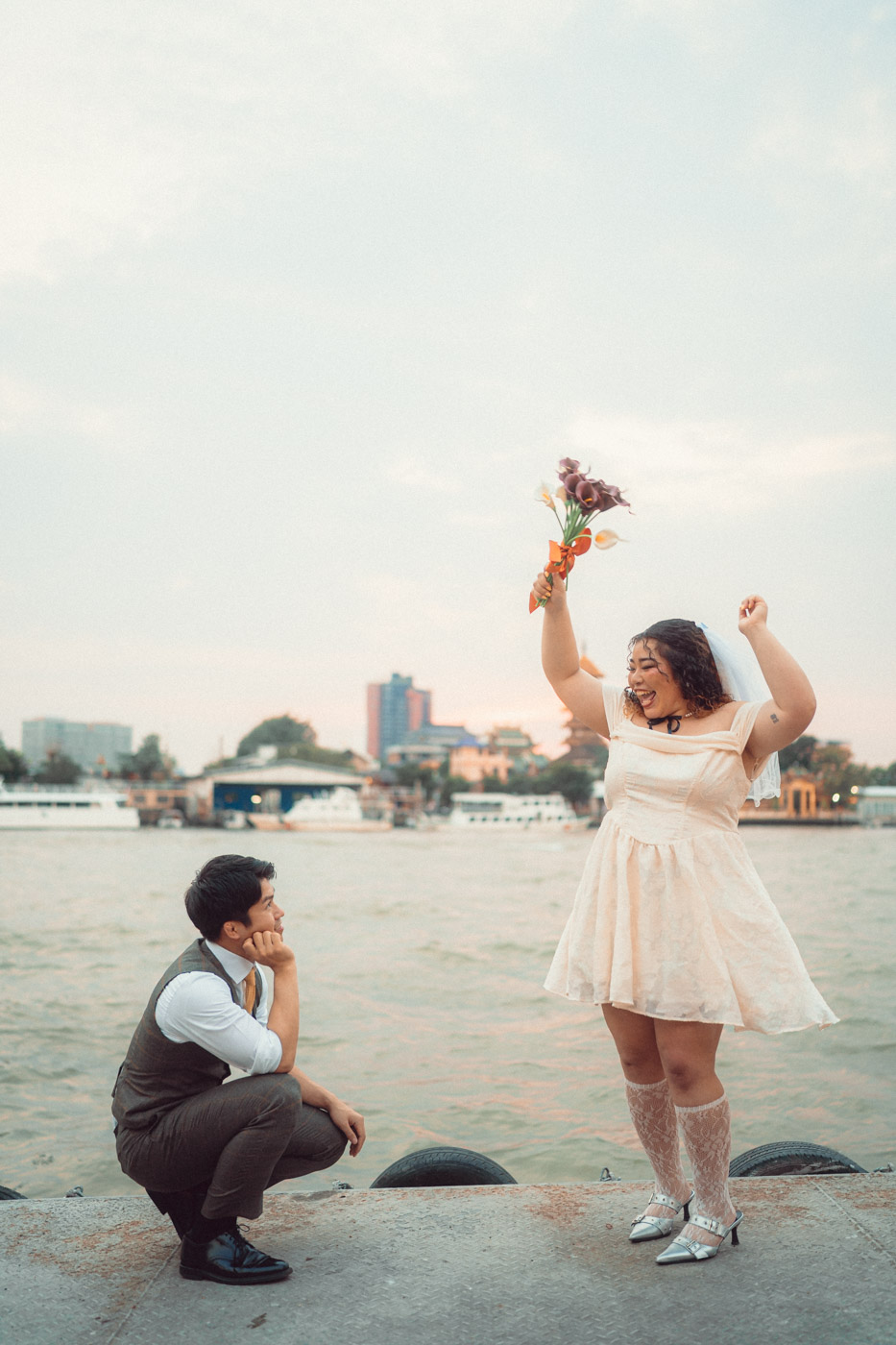 Had our shoot during a quick Bangkok stopover and Luk made it work perfectly. We only had one afternoon available and he planned everything efficiently. The riverside location at sunset was gorgeous and the night market shots have so much energy. Really happy with how natural we look in the photos considering we're both camera shy.