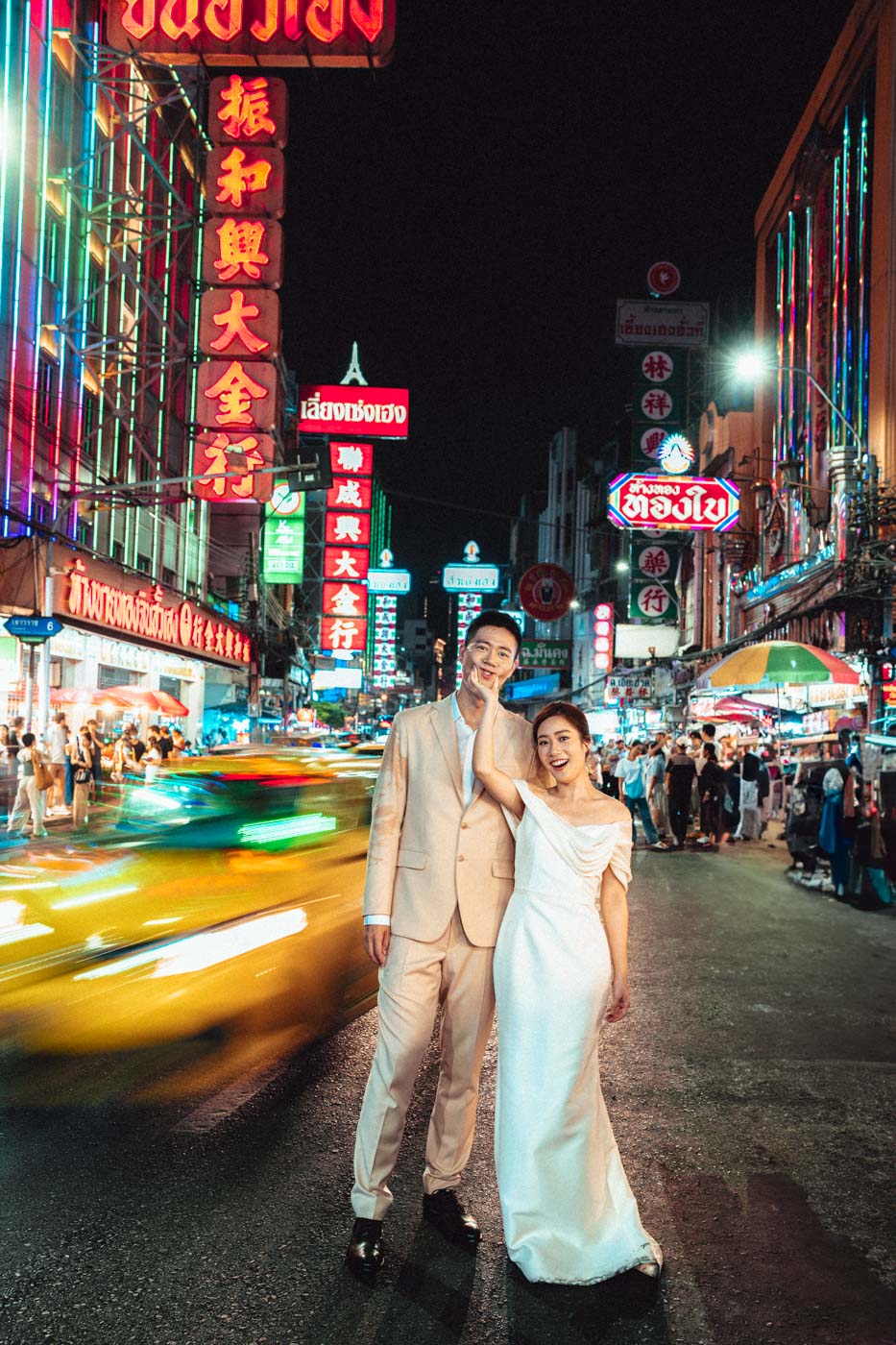 Bangkok pre-wedding photography that feels like a film, not a photoshoot. Candid moments, iconic backdrops, and the black mist grain aesthetic that makes your pre-wedding photos look timeless rather than digital.