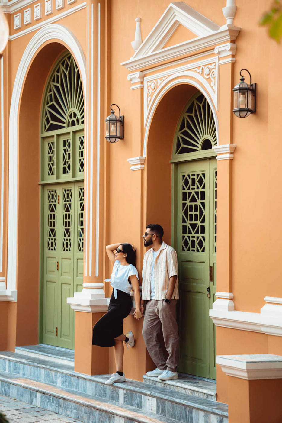Professional Wat Ratchabophit portrait photography featuring couples and travelers at this ornate Bangkok temple. View photoshoot portfolio and examples.