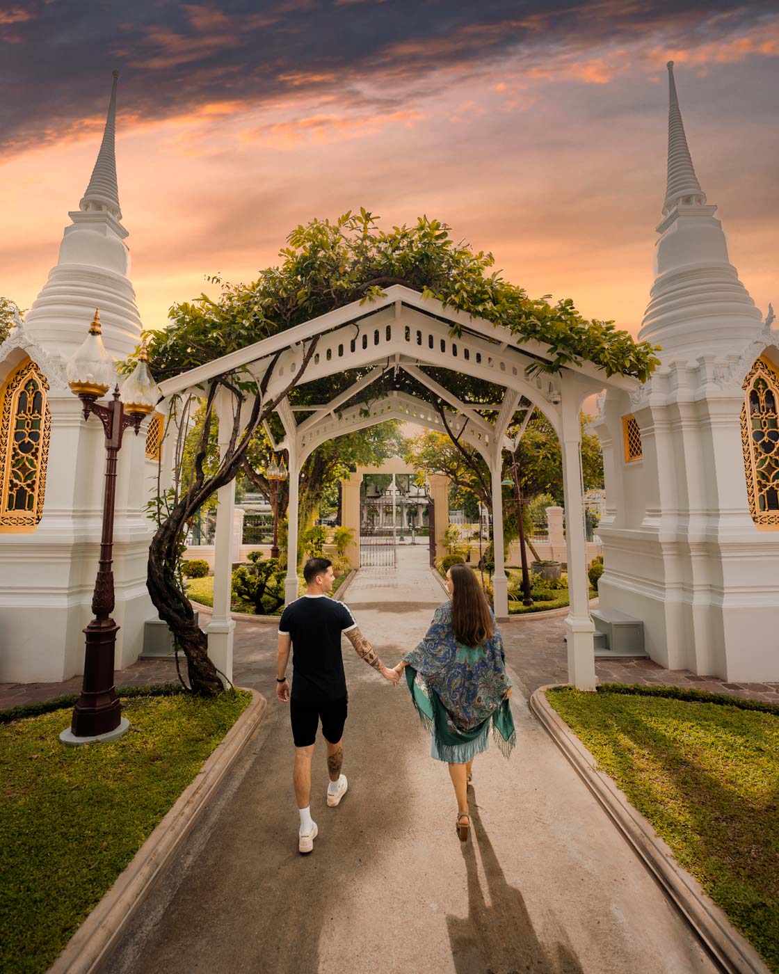 Couples will love how the temple's gold details shine in the afternoon light. We're experts at couple photographs that show both the beautiful place and your special connection. These romantic shots make wonderful keepsakes of your time in Thailand.