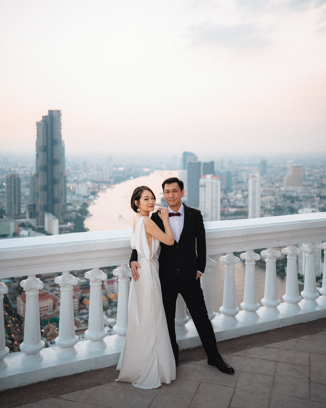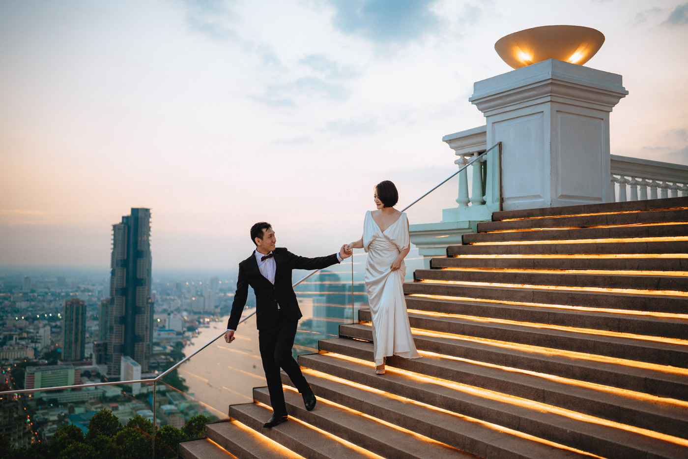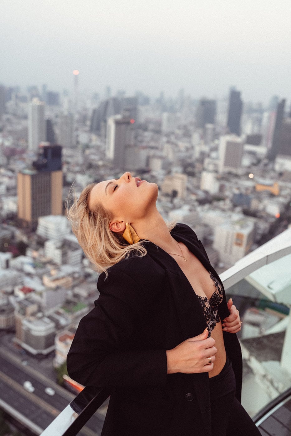 - 3 One drink per person is required for access, including us as your photographers. Drinks start at around 35 USD, main courses at around 65 USD. It is one of the priciest rooftops in Bangkok, so it is worth factoring that into your plans.