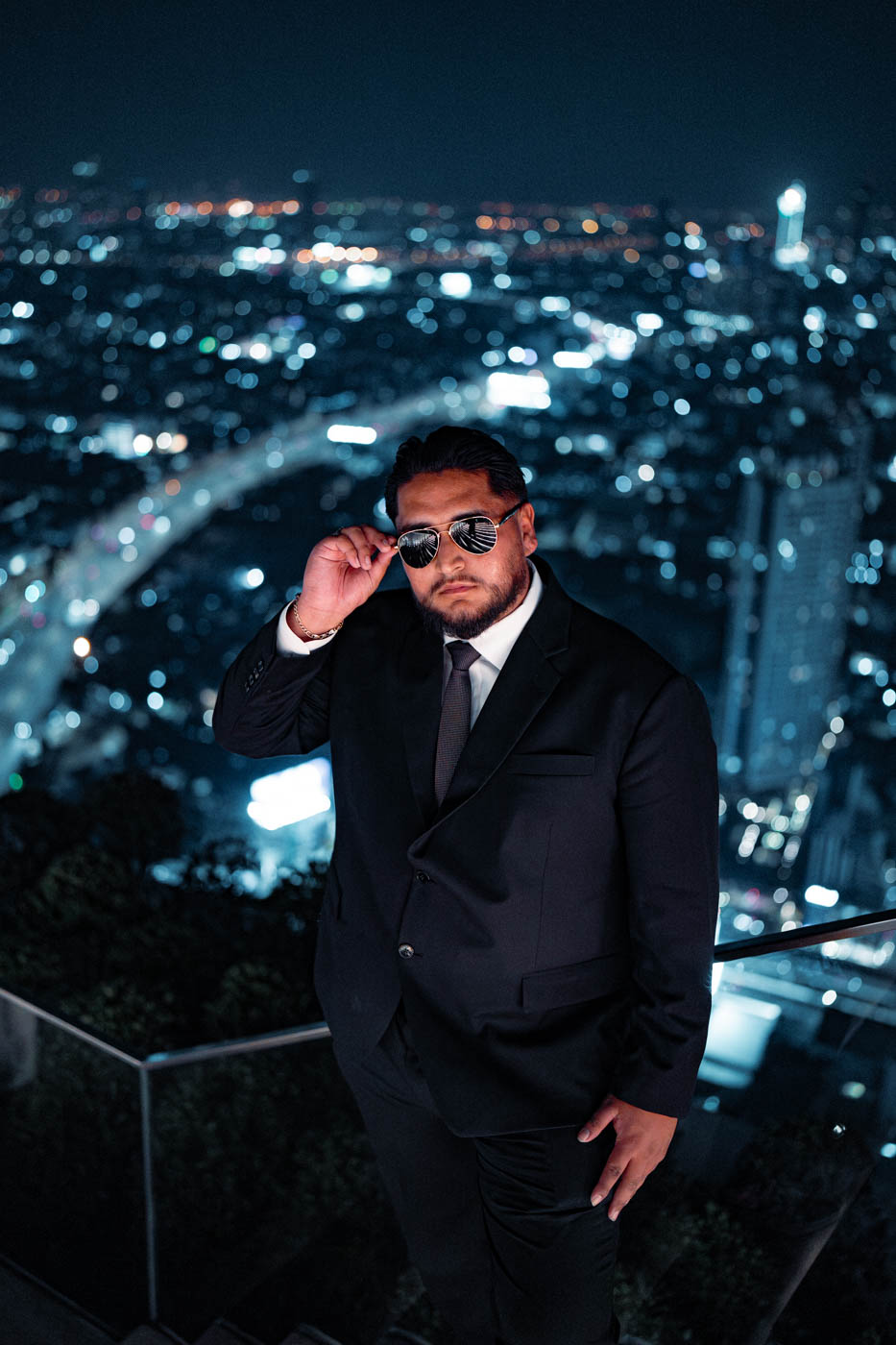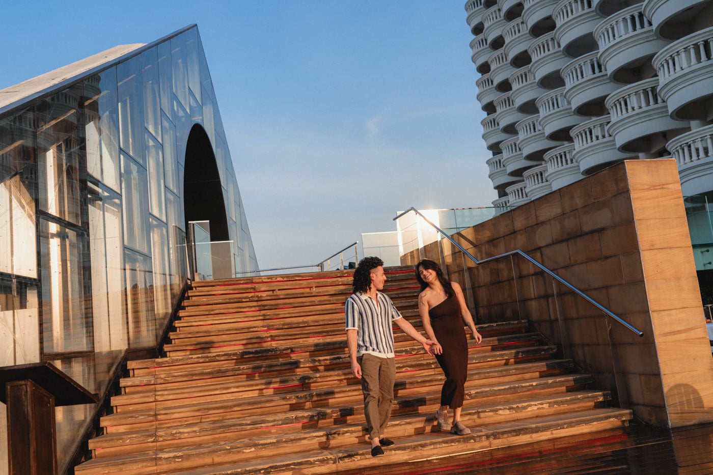 We are big fans of that early evening light for portraits. The quality at that hour is just better than anything you get later in the night. That said, night sessions are possible too, and the city lights give you a completely different mood.