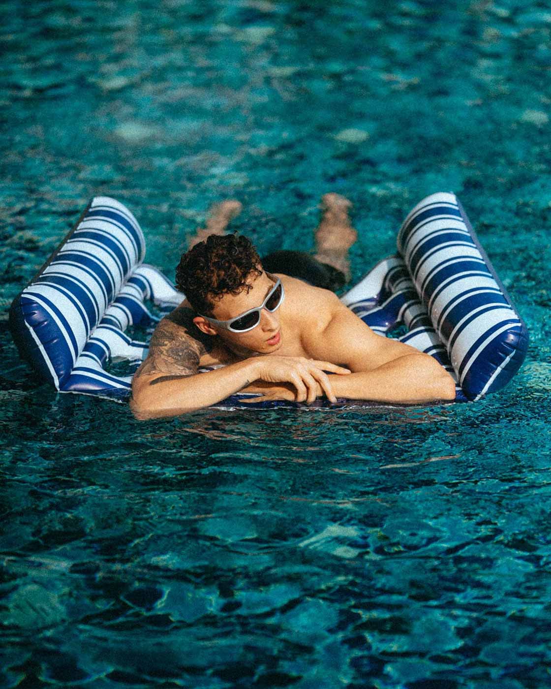 Fluffy towels, sunglasses, floppy hats, colorful floaties, or a floating breakfast setup.
