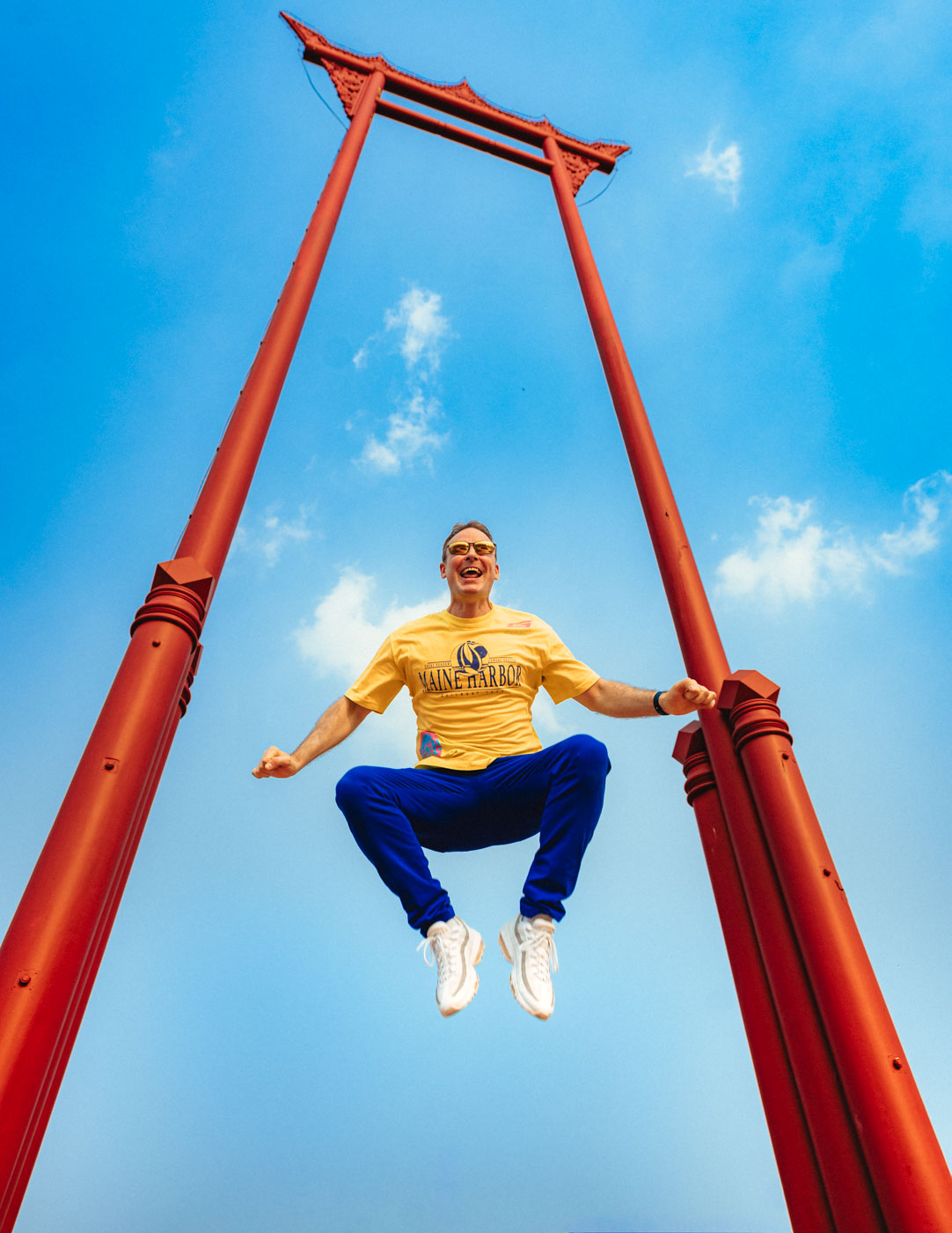 The iconic giant swing carved from golden teak wood - a perfect photo backdrop