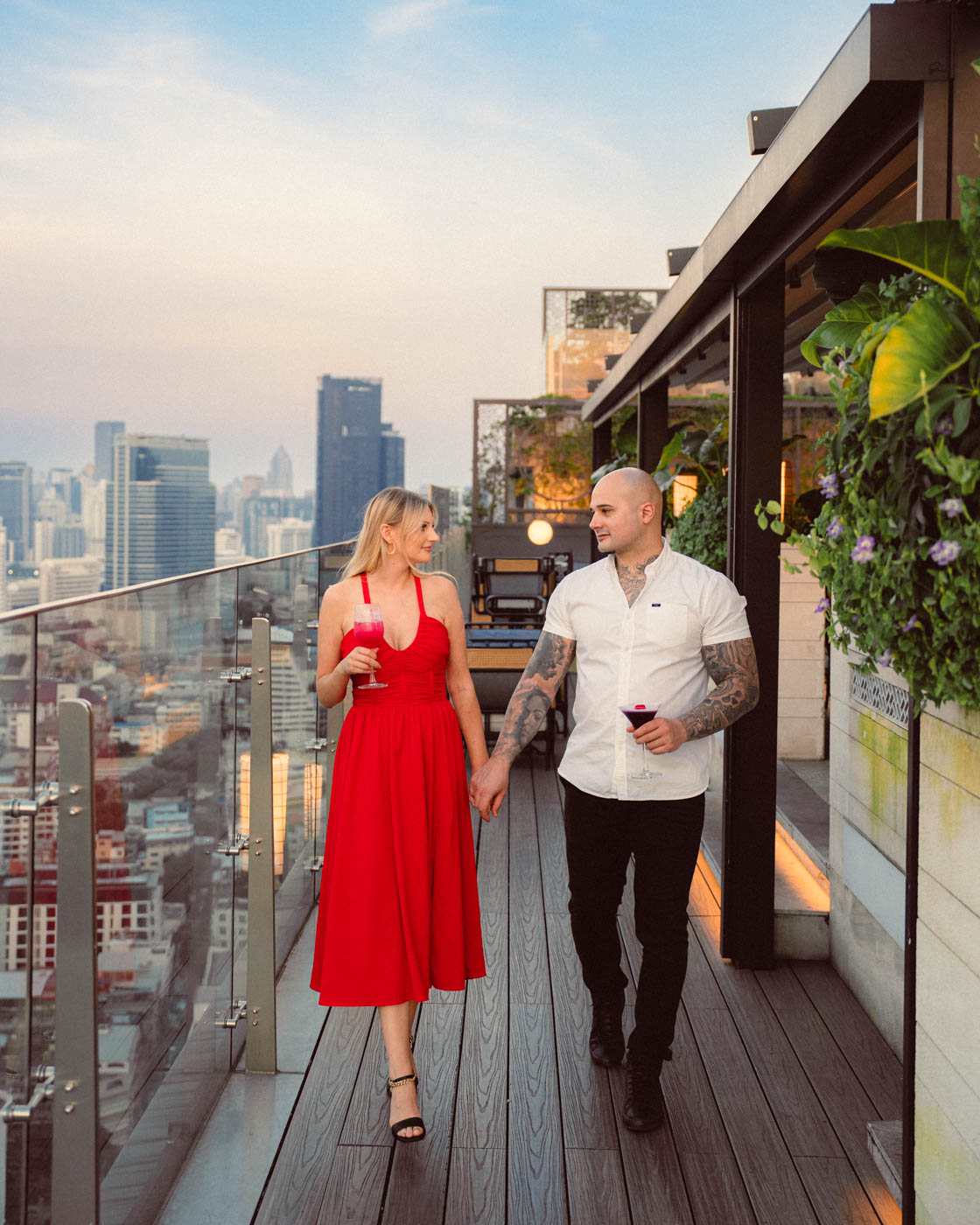 Enjoy luxury cocktails with Bangkok's best views at Marriott's sky bar. Perfect for photo sessions during golden hour. Book your skyline escape today!